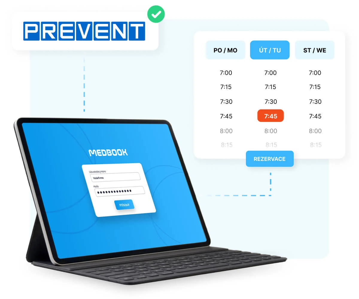 Termín lékařské prohlídky v ordinacích PREVENT ‑ Kralín si zaměstnanec jednoduše zarezervuje online přímo z notifikace.